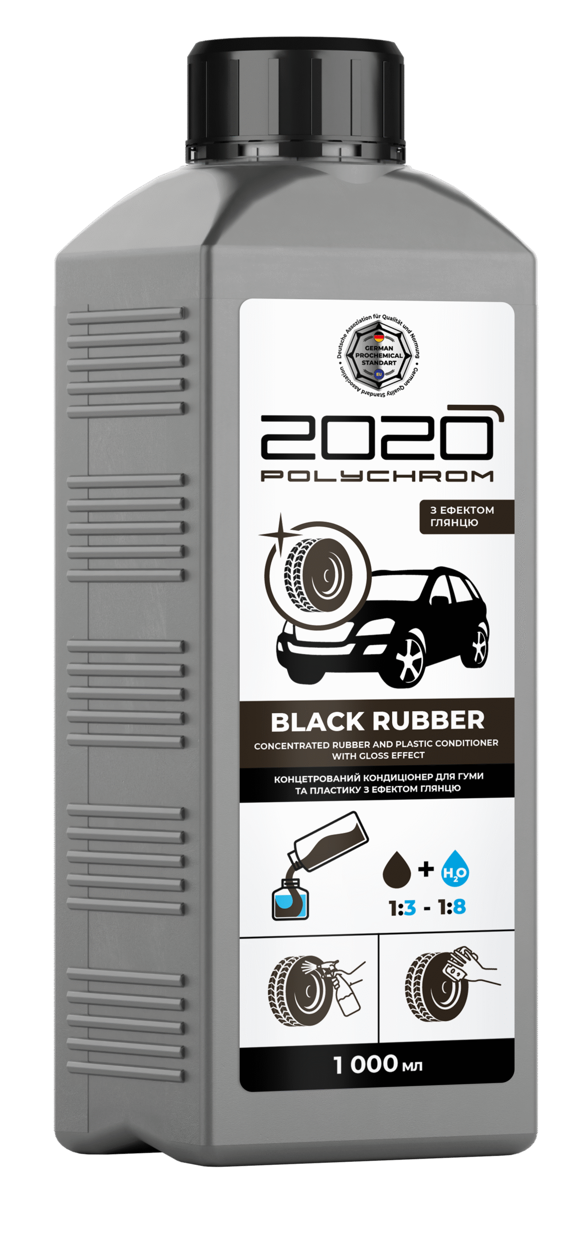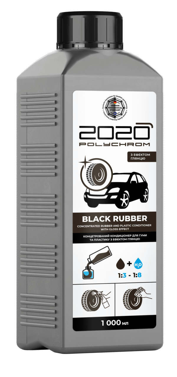 Laimennettava silikoniton muovi- ja rengaskiilloke ”Polychrom 2020 BLACK RUBBER CONCENTRATED”, 1l